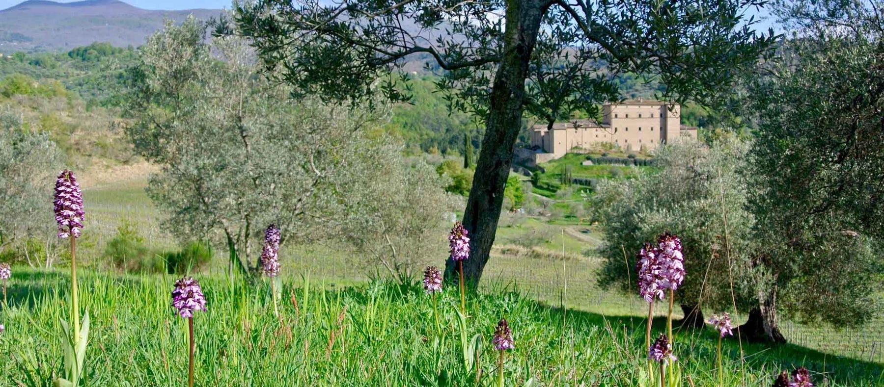 Potentino lies in a sheltered valley farmed since Etruscan times. It is home to centuries-old olive trees and some early examples of the Sangiovese grape variety. This continuous tradition of cultivation still carries on now. Industrial farming has not affected the area and the landscape remains similar to when the castle was built. It lies below Monte Amiata, an extinct volcano that last erupted between 180,000 and 300,000 years ago, creating an exceptional terroir with a concentration of volcanic soils.